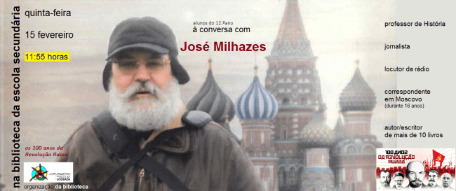 A convite da professora bibliotecária, Graça Coelho, o  jornalista e historiador, professor José Milhazes, esteve ontem, dia 15, pelas 11:45h, na biblioteca da Secundária de Lousada, no âmbito da disciplina de História do 12.º ano, para conversar com os alunos sobre “os 100 anos da Revolução Russa”.