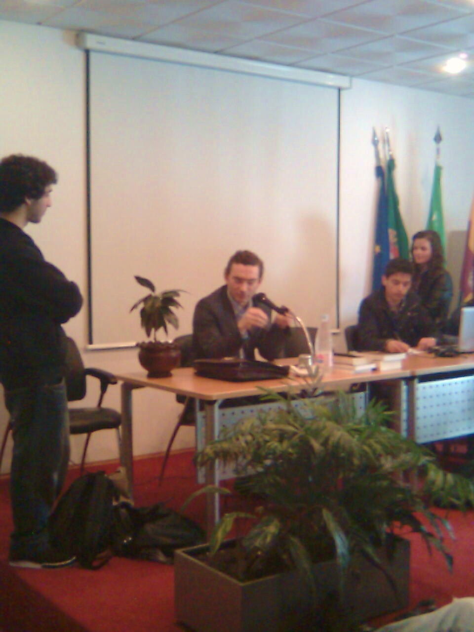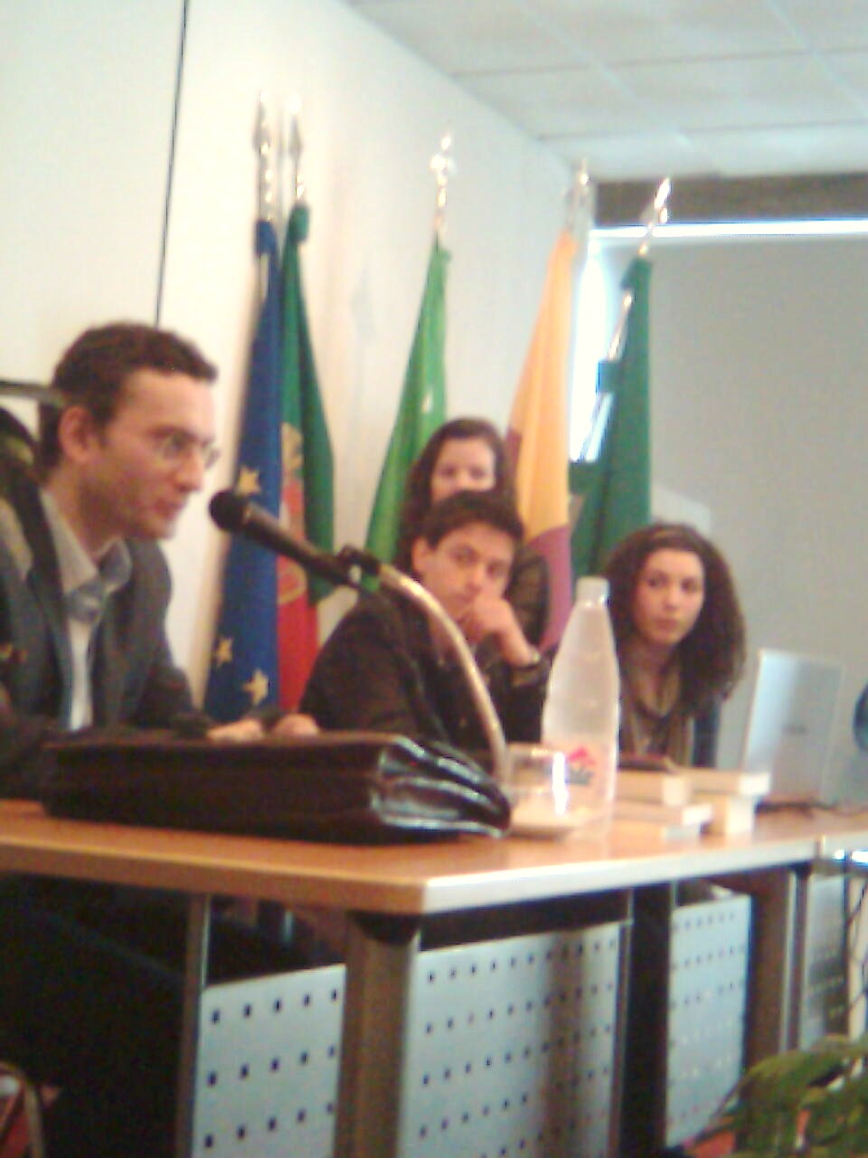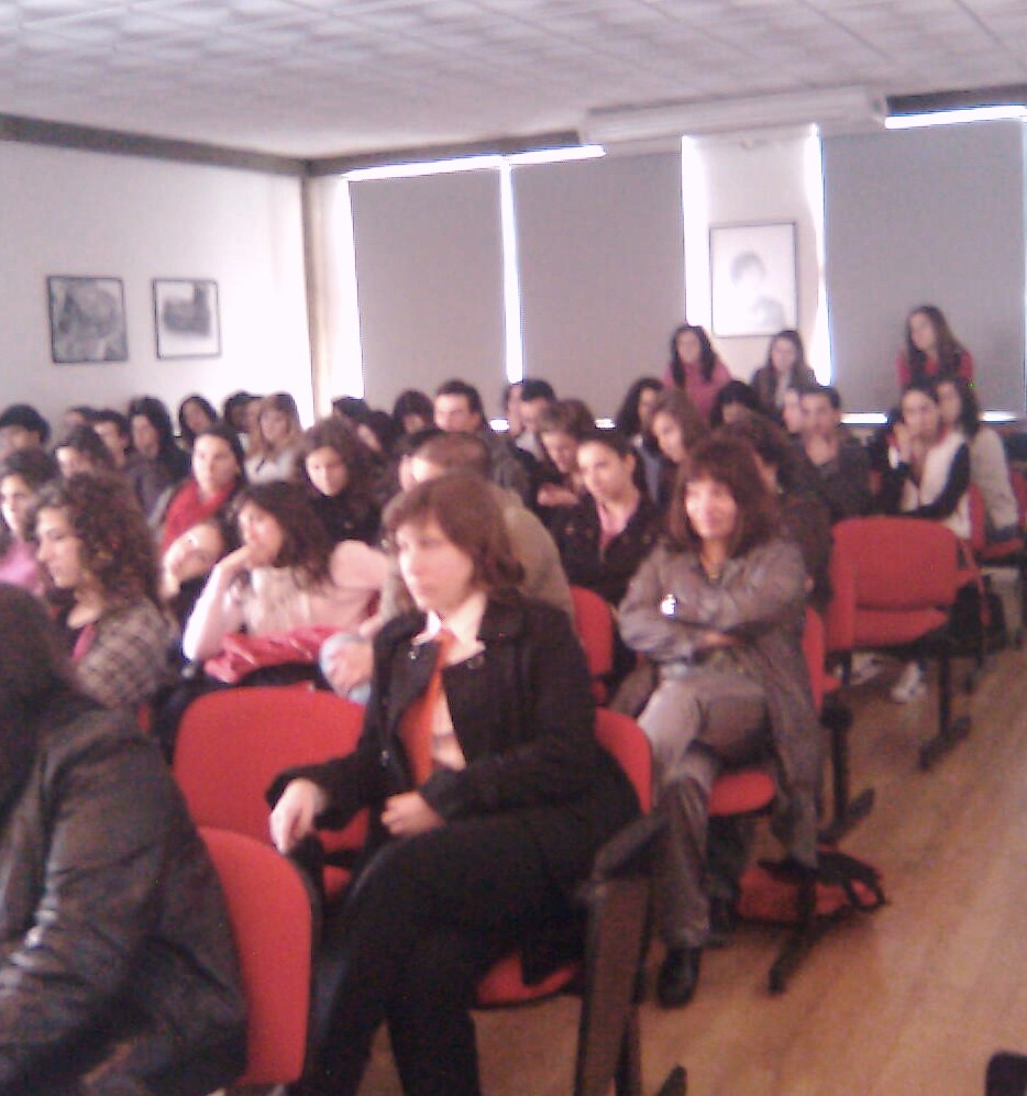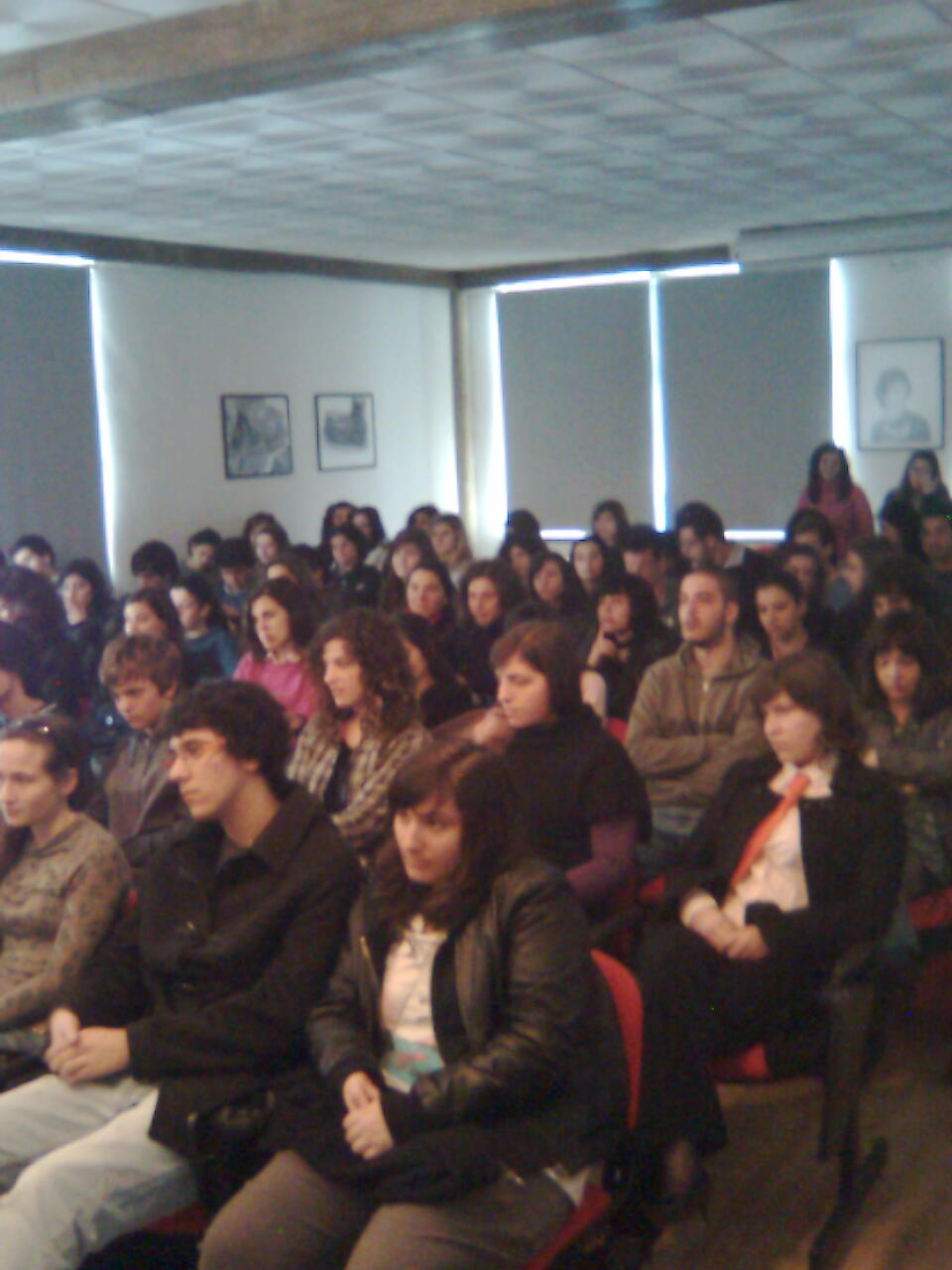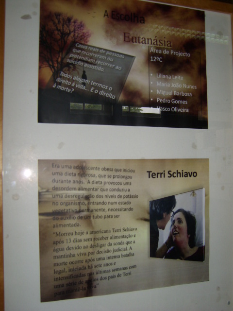 A Cátia, a Marta, a Rute, a Tânia e o André, do 12º F apresentaram hoje no auditório da escola uma “Palestra sobre doenças mentais”, no âmbito da disciplina de Área de Projecto, com a professora Susana Silva.