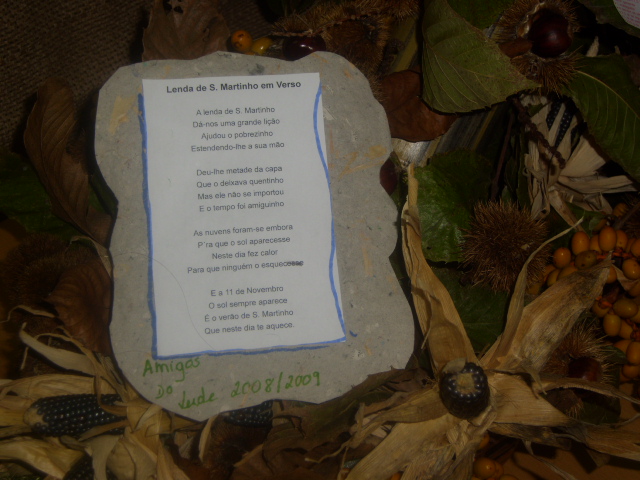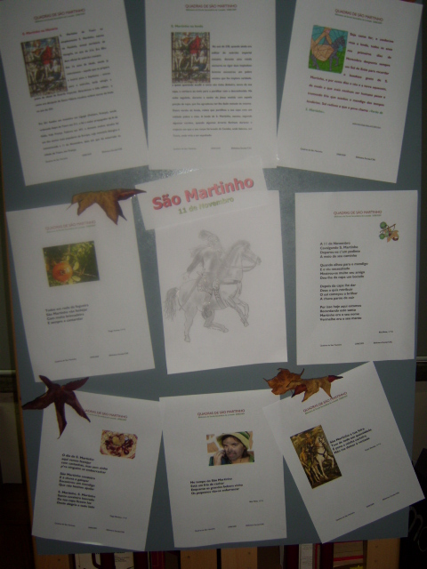 Comemora-se hoje na biblioteca da nossa escola o Dia de São Martinho. Para isso, os professores e alunos do Clube Prosepe – Amigos do Verde, juntamente com a coordenadora da biblioteca, reuniram arranjos e trabalhos interessantes sobre a lenda deste santo, a origem do castanheiro (árvore de nome: Castanea Sativa Miller) e a necessidade da sua preservação e, ainda, algumas receitas e adivinhas.