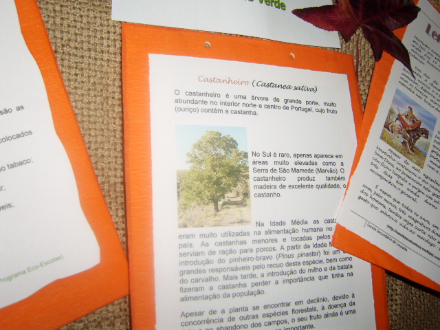 Ainda estão expostas várias quadras elaboradas pelos alunos do 8º A e D , na aula de Língua Portuguesa com a professora Emília Ferreira e do 11º C, em Oficina de Escrita, na aula de Português com a professora Graça Coelho, e relacionadas com a efeméride e com a prática de bons hábitos ambientais.