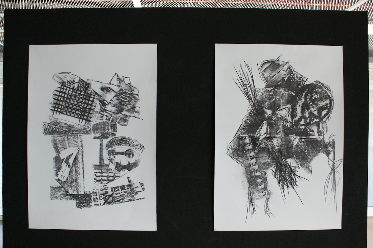 Desta vez, os alunos do 12.º J, turma de Artes Visuais, expõem interessantes “lineógravuras” no átrio da escola.