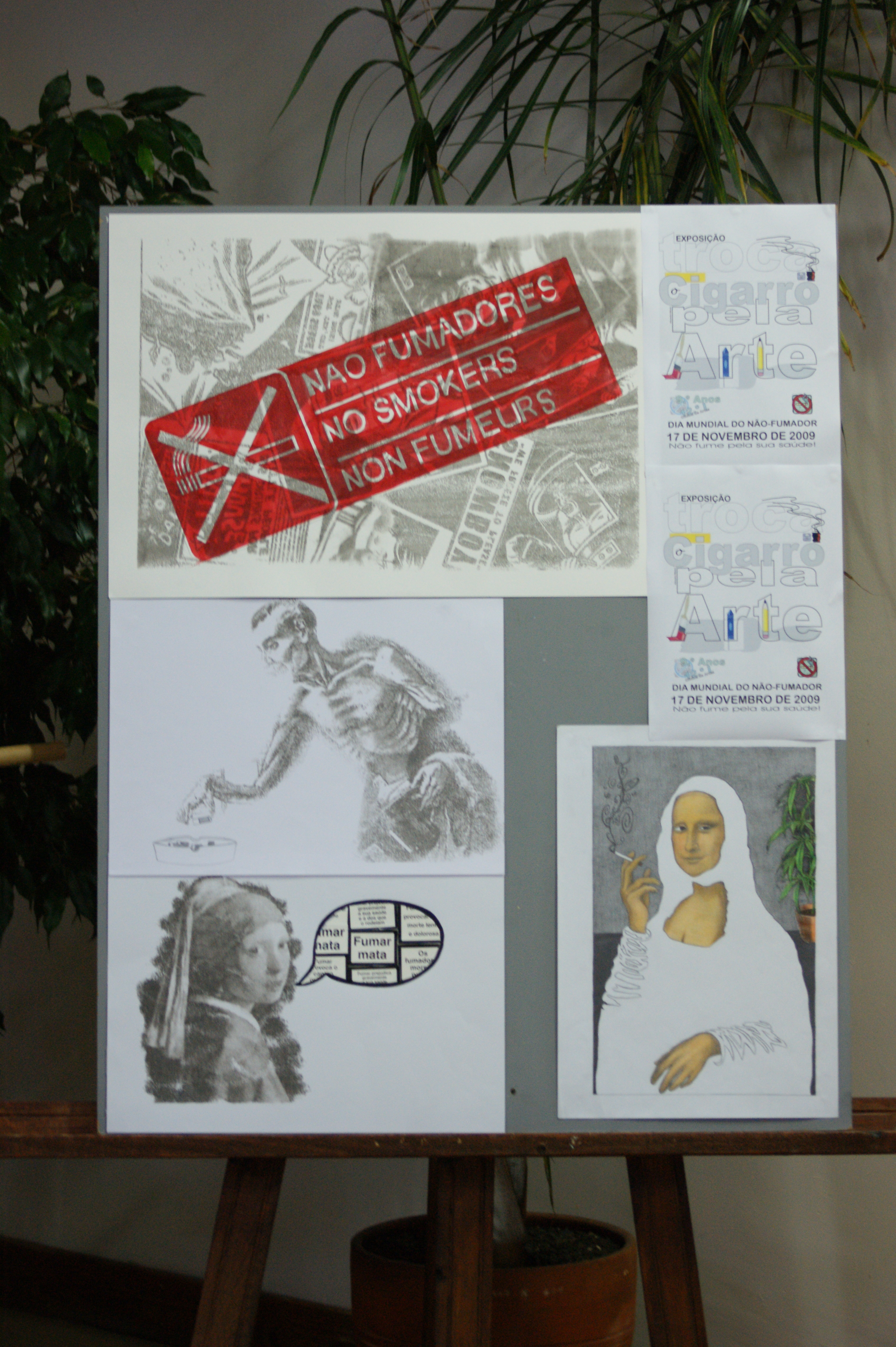 Trata-se de uma excelente participação em força de numerosos alunos e turmas da escola sob o tema global: “Troca o cigarro pela Arte”, que poderá ser visitada por toda a comunidade educativa ao longo desta semana. Os alunos e professores envolvidos pretendem, assim, mostrar aos jovens que têm uma boa oportunidade de reflectir acerca dos conhecimentos adquiridos sobre os malefícios do tabagismo e das vantagens de ser um não fumador, bem como utilizar a criatividade para alertar os colegas e os adultos sobre os benefícios de uma vida sem tabaco.