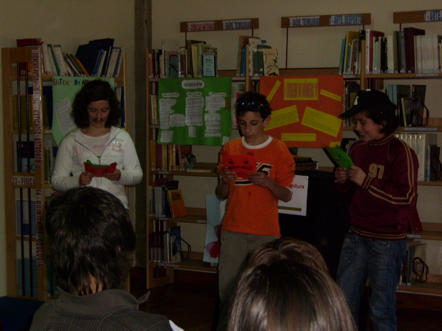 A leitura é um hábito que se cria. É o contacto com as palavras em movimento que desperta o interesse por novas leituras, para leituras diversificadas. Ler é, de certa forma, entrar no mistério do “faz-de-conta”. Assim, a leitura dramatizada torna mais concreta a palavra. Há que experimentar, há que criar espaços livres para essa leitura expressiva, criativa… A aula é um espaço privilegiado para incentivar o gosto pela leitura. Partilhá-la, torna-a mais atractiva! A turma C, do 8º ano, depois de assistir à peça de teatro baseada no texto dramático: “Falar Verdade a Mentir”, de Almeida Garrett, ficou motivada para este tipo de texto, propondo a criação de pequenos textos dramáticos a representar na aula de Língua Portuguesa. O resultado foi surpreendente. Todos os alunos da turma encarnaram uma personagem e quiseram que a Biblioteca da Escola (professoras Graça Coelho e Eugénia Gomes) assistisse, uma vez que esta tem fomentado as mais diversas actividades ligadas à escrita, à leitura, ao teatro…